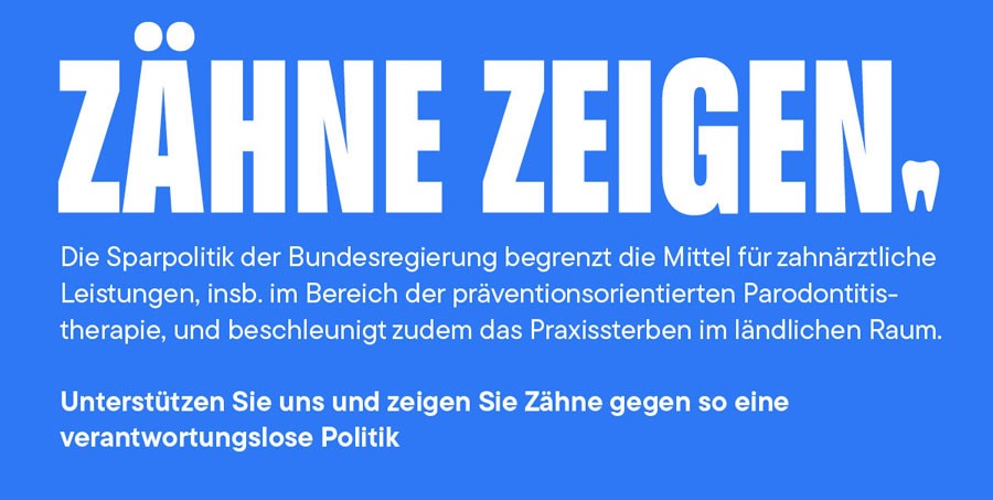 Damit die zahnärztliche Versorgung von Patientinnen und Patienten nicht weiter unter die Räder gerät, startet die Kampagne „Zähne zeigen“.